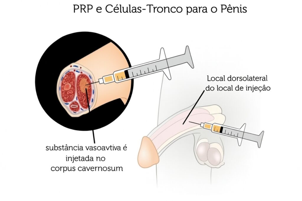 | PRP peniano (plasma rico em plaquetas) | Não de forma significativa | Melhora vascularização e qualidade tecidual | Variável, dependente de sessões | Função erétil e regeneração tecidual | Moderada para função, baixa para volume |